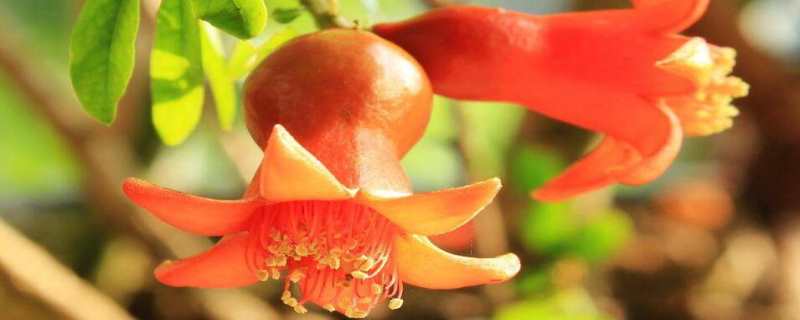 石榴花有橙红色、红色、白色、浅红色等,由于品种不一样,因此花色也是有区别。石榴的花朵有单瓣和重瓣之分,它的花朵是数朵生在枝顶处或叶腋处。石榴花为喜热畏冷的一种植物,结果实在为秋天,因此开花时节为夏初春末,在南方地区通常开花时间在阴历5月份开花,随后7月份花期完毕,有雌性花之分,分辨的方法是雌花的花基部较大,花后极少掉落,由于要结果实,雄花是不会结果实的。